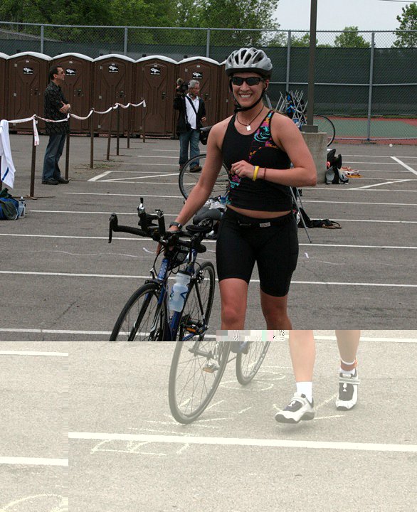 Now those of you that have been reading since last summer know I have a bit of "history" with biking. Psychologically this little incident took a major toll on me. I rolled into T1 so far behind I could hear them talking about where the final biker was behind me. I got off my bike and fell into a panic attack. Mark was already done and when he saw me in transition and thought I had a fast time, I began to freak out even more as I just got mad and told him I hadn't started my second run yet, I was no where near done. The "pissed-ness" was radiating out of me and I couldn't calm down enough to breathe normally and had to give in to walking a few times. I was emotionally beat up. I began to think about all the issues I had last summer and how this was the first race on my NEW bike since Ironman (and we all know how well that went) and this is the NEW bike that I paid a lot of money for. How could I still be having bike problems? What the hell?!?!
